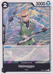Although Rebecca may fall to a lot of Red removal due to her 0 power, she brings a lot to the table and sees play in decks led by characters like Rob Lucci and Gecko Moria.