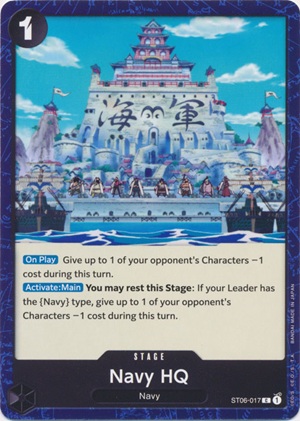 Navy HQ, Kuzan, Tempest Kick, and Hina mainly serve as cost reduction to ensure Sakazuki can later remove your opponents' characters with either Rob Lucci, T Bone or Brook. Tsuru is mainly a +2000 counter, however in a pinch you can drop her to ensure further cost reduction where needed to ensure a threat on board is swiftly removed.