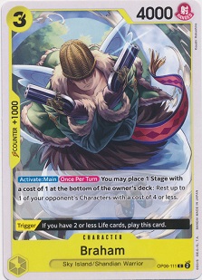 Yamato reads: "[On Play] K.O. up to 1 of your opponent's Characters with a cost equal to or less than the total of your and your opponent's Life cards. Then, if you have 1 or less Life cards, add 1 card from the top of your deck to the top of your Life cards." With 9000 power, Yamato is a solid finisher. Yellow Ace rejuvenates your life pile while also acting as a major threat, reading: "[On Play] Add up to 1 card from the top of your deck to the top of your Life cards. Then, if you have 2 or fewer Life cards, this Character gains [Rush] for the turn."