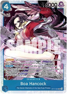 But enough about the cards that are currently available to us, I am sure you want to go over some of the excellent new characters coming out of Starter deck 17 for Doflamingo, right? Let's take a look at Marshall .D. Teach and Boa Hancock.