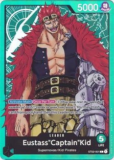 Leader Bonney has made her rounds and proven to be one of the most controlling Green decks in the game. Green has previously been known for playing midrange to large characters, resting down your opponents board, and getting rid of their threats by swinging into them. Bonney makes your opponents think about which characters to swing into and which characters might be rested once you swing in with your attacks. Cavendish makes for an excellent addition to this leader's deck with a cost of 5 DON!! And 6000 power and an ability that trigger both On Play and When Attacking that reads " If your Leader has the {Supernovas} type and you have no other [Cavendish] Characters, set up to 2 of your DON!! cards as active." Bonney Leader really only needs one DON!! to activate her ability, but a second DON!! never hurt anyone... except your opponents! It's also worth noting that Cavendish is not limited to just Bonney; Cavendish works within Red/Green Luffy leader, Red/Green Law and Green Kid.