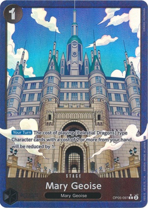 Imu is a Mono-Black 5000 power leader with 4 life and the following static ability: "Under the rules of this game, you cannot include Events with a cost of 2 or more in your deck and at the start of the game, play up to 1 'Mary Geoise' type Stage card from your deck."