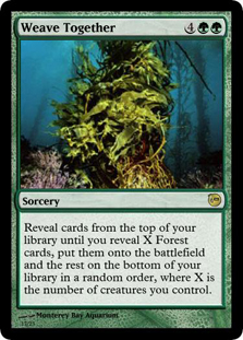 In parts of the sea where there are fewer inhibitors, the Pekel often grow together into solid blocks of biomatter. Unable to move and overflowing with green mana, these concentrations are Clewug’s Forests.