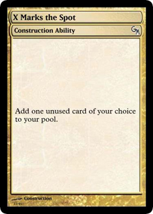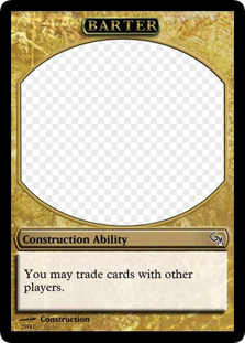 Barter almost worked well except for the awkward timing of the effect. It’s hard to make a lot of trades while the people you’re trying to trade with are busy using the bathroom, grabbing food, and building their decks, and as such, this power didn’t have as big of an impact as I would have liked. I’ve yet to come up with a good fix, so for the time being, I’m taking this slot in a different direction:
