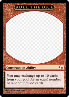 Roll the Dice didn’t do a whole lot to affect the Draft because even if you received a card that enabled a shift in strategy, you’d just gotten rid of the other cards you needed to make that shift. For that reason, I’m returning to the version that gives you cards before you start drafting so that players can plan around the effect.