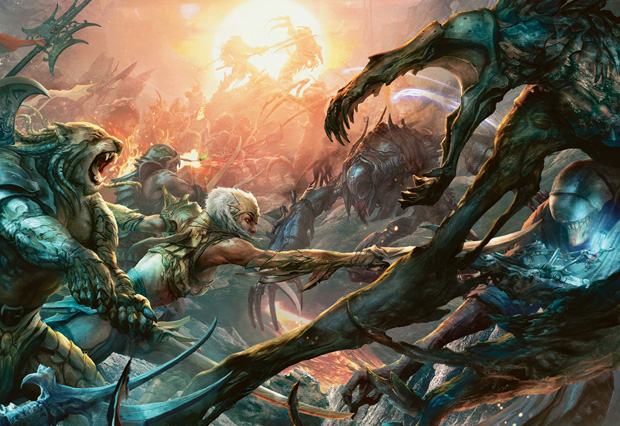 While Zendikar-like world designs seem to stem from mechanics, you can actually put the method to good use without one. In using a mechanic, you’re essentially defining that element from a flavor perspective and then building up the rest of the world to support that. In much the same way, you can use one idea for a piece of the setting to build an entire framework, even if the original element doesn’t take kindly to being represented on cards.