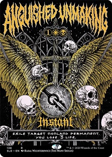 Available for a short time in February with the Valentine's Day-themed superdrop, these lands were meant to really accentuate that heavy metal aesthetic. I myself bought a pair of foil ones to go into my all-foil Sharuum the Hegemon deck, and these are perfect for a list like this as well. There's lots of great artwork for the cards in this deck that wouldn't be terribly out of place for bands such as Cannibal Corpse or Emperor or Death. It ties up is, in general, a stylishly flavorful home run.