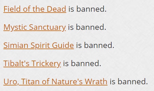 Just five cards were banned from a format with sets as old as 2003 and it will cause one of the largest shake ups in history. It's pretty crazy to consider when new sets are released on a quarterly basis with hundreds of new cards.