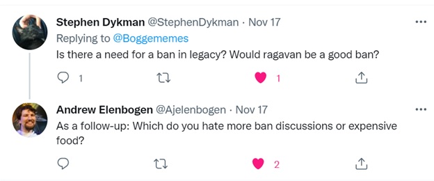I dislike the idea of paying a lot of money for food more than ban discussions. A key part of ban discussions is to look at the format compared to where it would settle without the cards on the chopping block. It's good to examine the format as a whole. I will pay more than the minimum amount for food because healthy food is typically more expensive than the bottom of the barrel. Truly expensive food is typically bad for you so it's not value.