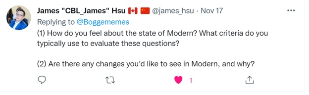 Matt Sperling's question is going to kick things off because I can share my favorite Modern and Legacy decklists. I also have the chance to save humanity from aliens. No pressure.