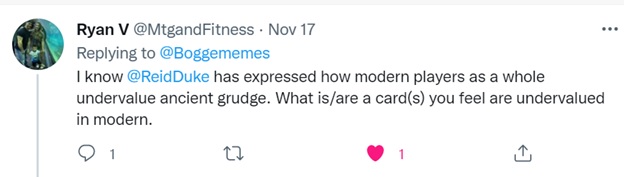 I swapped the third Inquisition for a second Lightning Bolt to increase my chances against creature decks on the draw. Ragavan is insane on the play, but needs a lot of help when playing second. I could play a Fatal Push in this spot, but Bolt is a more generic spell that can be played proactively.