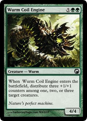 Talk about a great pull, a green 7/7 with some diversity. Perhaps pumping up an evasive flyer, or using it as a poor man's Overrun, the Wurm Coil Engine makes for a fantastic Sealed card. Something to build a deck around, or at least splash some green to get the potential 7/7 on the board. The interesting dynamic is how this fattie can interact with the Scars retro-mechanic Modular.