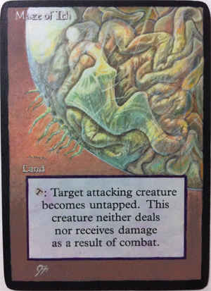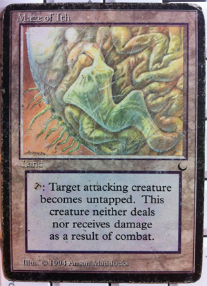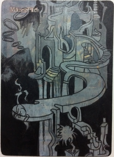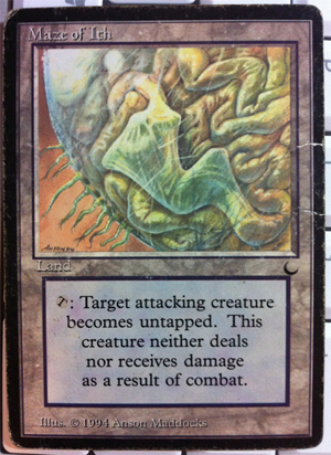 The pictures don’t really show how mangled these two Mazes were. The one on the left, where you see the two small crease lines on the right-hand black border, were actually more like full folds all the way through the card!