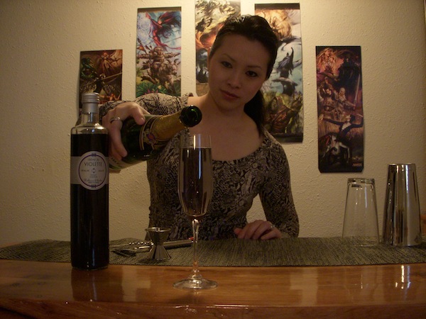 Pour crème de violette into champagne flute. Add champagne. Stir gently if needed. Garnish with lemon twist or whatever you think is sexy.