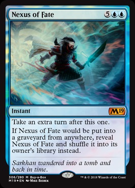 Nexus of Fate -- Lucky for us, we got to hear the old argument about "dangerous presidents"[sic] that we first heard about Firesong and Sunspeaker (Currently $10 on Coolstuff Inc. with 20+ copies available) and I'm sure we'll get to hear it every set until they stop trying to incentivize players to buy at their LGS or print a card that's decent in Standard. I don't think Nexus is the Commander staple that everyone who doesn't play Commander claims it is to bolster their argument but I think this is quite good and you could deck yourself and take every turn with this. It's good, but so is Enter the Infinite and that's $2. As a builder, maybe one of my decks can use this card. I don't think it's a problem and taking turns for taking turns' sake is annoying, so have a plan when you cast this.