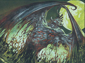 Next round I face a Domain Zoo build. He starts with a Stomping Ground to play a Wild Nacatl. I’m smilling since I have a favorable matchup with Zoo. Game one goes his way with a turn 3 Sulfuric Vortex. Even then I’m feeling that will hit either Tutor or Oblivion Ring soon. I draw Wraths aplenty but no answer to the Vortex. Game two I keep a double Wrath and Oblivion ring opener only to get stuck at 3 mana forever. Finally I play the bane of Zoo only to see him forecast a Proclamation of Rebirth! Where did that come from? Second Wrath only slows him down as 'Goyf beats me to submission. No Martyr or Rangers. Still I felt pretty Okay about the day. One loss is no big deal.