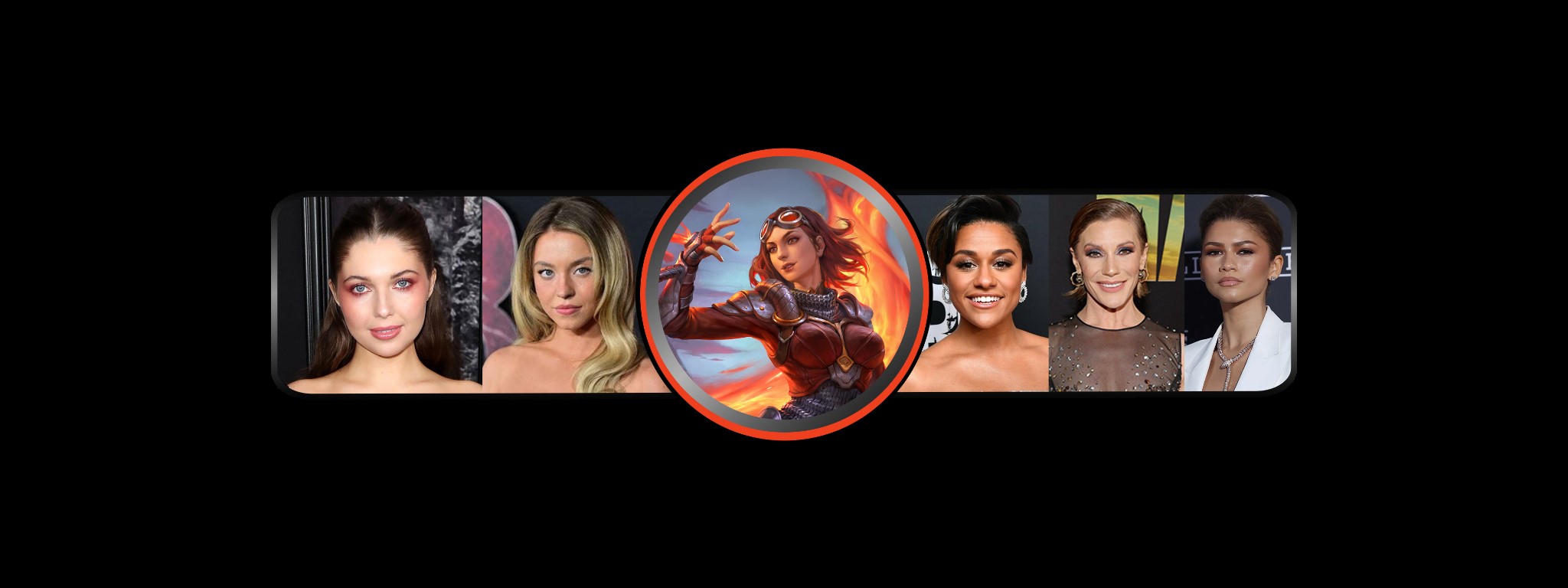 Chandra is red-haired and amber-eyed, and her hair turns to flame and her eyes often glow red when she's performing magic. She is emotional and impulsive, and every card ever made for her is mono-{R}. According to her Wikipedia page, she's 5'6" and 130 lbs, though I've always felt she looks shorter than that in her images. That said, I've picked five actors to play her in the upcoming movie - all of whom would need a wig for the role!