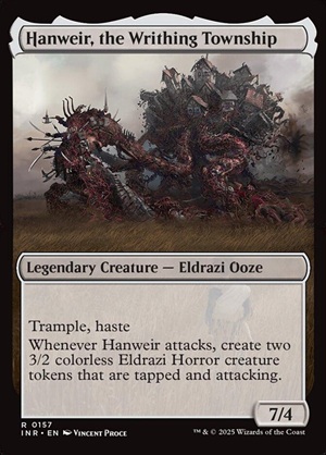 I love how they're all in the same Graveyard, then the final Melded Creature is standing in the same place. Same with the Hanweir Battlements - they're all in the same place until they Meld and the city is on the move. The artwork in these cards is really very cool.