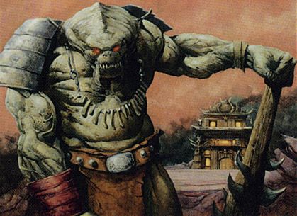 Without the ability to kill Heartless Hidetsugu, Toshi opts to demoralize him. During the above battle, the forces of Konda, Lord of Eiganjo reappeared to find That Which Was Taken. Moments later, O-Kagachi materializes in pursuit of Konda, which is enough to frighten the All-Consuming Oni of Chaos into a retreat. Toshi notes to Hidetsugu that his demon-god lacks the fortitude to stand against O-Kagachi, which shatters the ogre's faith in the demon. Toshi makes him a deal: let them go, and Toshi will teleport Heartless Hidetsugu to the Honden of Chaos to confront the All-Consuming Oni.