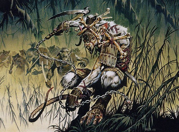 Returning to Takenuma, Toshiro Umezawa finds the conquering Moonfolk are claiming both forest and swamp, as the area is swarming with troops. Kiku, Night's Flower's entire clan has been wiped out. Marrow-Gnawer's rat pack is desperate for help. The Mono-Black Trio of anti-heroes teams up and decides if they can't teleport That Which was Taken, they'll have to fly it out. After a brief stop-over at what's left of Castle Eiganjo, Toshi steals a Moonwing Moth as an aerial getaway car. Ever-faithful Isamaru, Hound of Konda emerges from the rubble to attack the ronin, but Toshiro recognizes the dog as Michiko's and teleports him safely to her care in Jukai. A surprisingly compassionate move for a ronin who once only cared about saving his own skin. Perhaps Toshi is starting to get the hang of this whole protagonist thing?