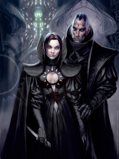 Plans, as they tend to do in the Magic universe, go awry. It's not long before we find Teysa dragging the dead body of Uncle Karlov into the very bar where Kos is working. She doesn't realize it yet, but she is his murderer. The mana bomb was about more than just 'curing' a plague. Teysa is a pawn in a grander game. A conspiracy is afoot, one that naturally involves trying to overthrow the Guildpact. Again. Only this time, the target is another Parun: Niv-Mizzet, the Firemind. Orzhov paruns Obzedat, Ghost Council intend a coup, employing a rogue Izzet scientist to hatch a trio of baby dragons and send them after Niv.