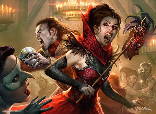 In review, Anje, Maid of Dishonor wants us to run many vampire minions, both for blood tokens and the blood price of her sacrifice ability. This combination of token value, life drain, and vampire aggression all work in conjunction to grind down our feeble human opponents. An elegant, yet ruthless strategy. Our lineage would be proud.