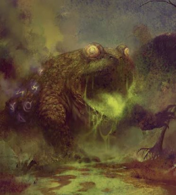 How is it that the non-Innistrad take on Gitrog is somehow the most terrifying? "Hypno Toad" has taken on a far more beloved stance in the community after he helped save the multiverse in Thalia and the Gitrog Monster. Then they gave everyone else a chance to hop aboard via The Gitrog, Ravenous Ride. He seems silly now, but our introduction to the beast was genuinely disturbing. In the story "Sacrifice", by Michael Yichao, we learn how the Gitrog entrances villagers to march into its maw. It feasts on human-puppets who have no control over their movements. The tale's protagonist manages to avoid this grisly fate, but only because the monster decides to use her to lure in more victims, starting with her own best friend.