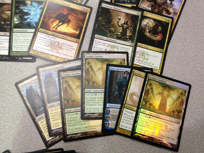 As I mentioned, we made it to California late Thursday evening, after spending thirteen hours in the air. We didn’t get much else done that evening, and we went straight to bed after arriving at the hotel. Our third teammate had arrived a couple of days earlier, and he was in full swing playing a Team Draft in the lobby when we arrived. Our plan was to get in as many Drafts as possible during Friday and also find time to do a practice Sealed with some opponents. We found some good opponents in Brad Nelson and Glenn Jones on Friday morning. It’s always nice when you are able to find quality opponents, especially when you are looking to practice for an upcoming event and want to play against the best opponents possible. Later that day, with were able to do just that, as LSV, PV, and Cheon were looking for Draft opponents. We managed to squeak out a win in that one even though we were outclassed by a magnitude when it comes to skill. The rares opened were quite something, as you can see from this picture.