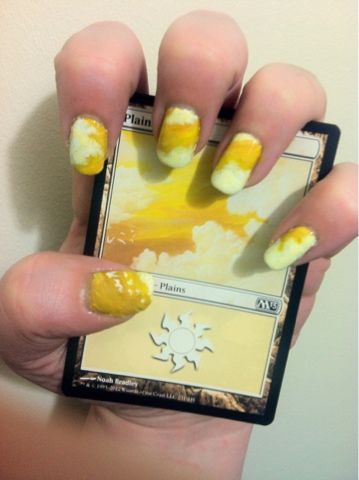 Newly Obsession is a blog that showcases one woman's journey through her nail-art addiction. As you can see, she has paid tribute to Magic artist and known Redditor Noah Bradley. If you take a good look, you can see the attention to detail. Her thumb has the birds from the lower-left side of the card! Check out her blog, and look for other Magic: The Gathering nails—she did a tribute to the John Avon Forest!