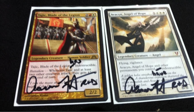 In addition to a ton of Magic: The Gathering folk being at San Diego, Aaron Forsythe was down under for the inaugural PAX Australia. While Aaron was waiting for a panel, some PAX goers took it upon themselves to have Aaron “fix” two cards. Since indestructible is now a keyword, it makes sense that Aaron needed to fix these cards. So, if you’re ever at a convention at the same time as Aaron Forsythe, make sure you ask him to errata all your cards. He’ll happily do so.