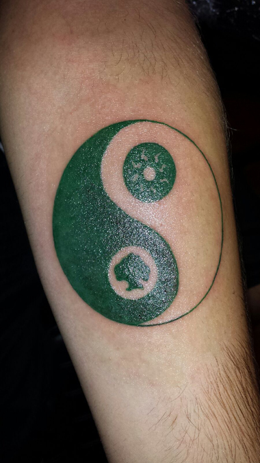 Magic tattoos aren’t a new thing within the community. It fascinates me to see the different types of tattoos people have to represent their connections to the game. Based on the yin and yang philosophy, this Imgur user’s tattoo represents two favorite colors in a beautiful dance of give and take. While not generally known as enemy colors, the tattoo represents a perfect flow of opposites.