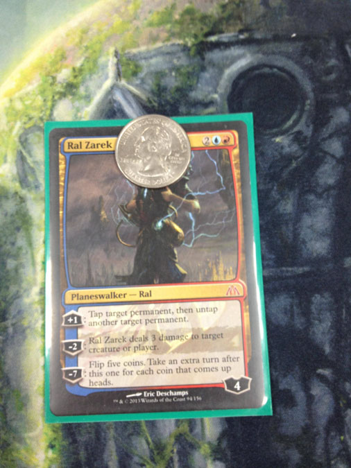 We’ve all had that perfect moment—when you roll exactly one number higher than your opponent, giving you the option to play or draw . . . that moment when you use Ral Zarek’s ultimate ability and the first flip lands perfectly. There’s something poetic about this photo. I’m not sure if it’s Ral’s smug posture mixed with the greatness of George Washington’s profile, or, wait . . . actually, that’s exactly what it is. I mean, look at this. You have a president sitting there, almost taunting you. It’s as though he were saying, “I cannot tell a lie . . . I’m taking an extra turn. Maybe four more.” Mr. President, father of our country, you can do whatever you want.