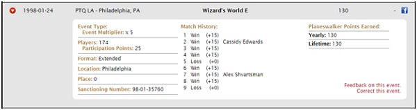 Sixteen-or-so-time Grand Prix Top 8 competitor Alex Shvartsman returns as a named opponent. This must have been devastating for me, though. I mean look at that record. 1998? What deck was I even playing?