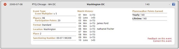 Yes, PTQs were a bit shorter then. Somehow the third round isn't recorded by the PWP website. How I beat Alex twice after the ID is baffling. What's most important is that, yes, the slot-stealer in question was the GOAT.