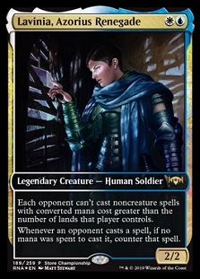 Obviously Lavinia is primarily targeted to the Nourishing Shoal / Force of Will crowds of larger formats, but she ain't half bad against a giant Banefire. As someone who has come back from manascrew to kill a Jeskai player with three land in play (one of which was a Sanctum of the Sun) I can heartily say "not zero."