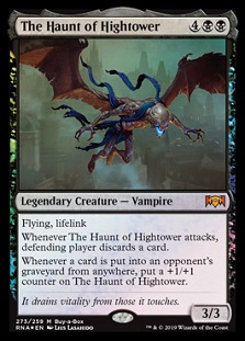 Unlike most "Hypnotic Specter" types, The Haunt of Hightower doesn't actually have to connect to rock and roll with the discard. Moreover, it can exploit the opponent's own strategy. Cantrip-driven Drakes deck? Um... Those cards go to the graveyard, right? Surveil? Search for Azcanta? All free value.