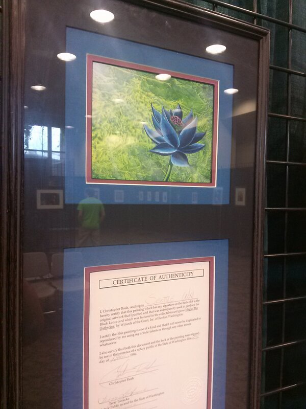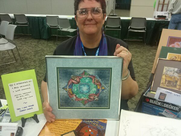Josh Krauser, the webmaster over at OriginalMagicArt.com is there and taking pictures like a man possessed. Most notably, Peter Adkison, former CEO of Wizards of the Coast and CEO of Gen Con has loaned some of his Alpha original artworks for an art show.