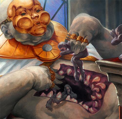 Mike: Randy, Maw of the Obzedat appears to be very much outside your style, and yet, you pulled it off. Similar comparisons are being made to Rebecca Guay’s Heartmender as a style . . . variation, if you will.