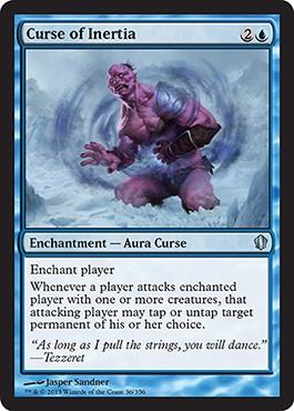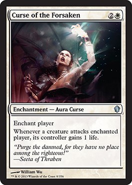 So, this Curse actually helps other Commander players gang up on him—literally. The others might help by drawing or whatever, but this actively says, “Target that player, do it now.”