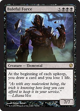 I’m a flavorful dude. Killing someone with a dragon’s breath weapon is money. Having cards that play up Vorthos’s loves of flavorful interaction are bread-and-butter staples of our interests. I love how this flavorfully makes sense. You’re raising something from the dead, a fellow wizard brings back a fallen dragon, another brings back a beast, and in the end, you have a powerful lich, some undead goliath, and some sort of demon. That’s an awesome story, no matter if you win the game.