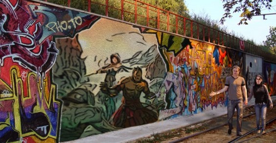 So, how are these terms different? Street art is objectively a more positive word and often connotes a higher value for said art. In layman’s’ terms, street art has a message—a purpose—and tries to push an agenda. Graffiti often also has an agenda, but a sinister one to deface or claim ownership via a gang’s markings, for example. In the eye of the law, both are considered illegal, and often, most street artists previously considered themselves graffiti artists. Up until, oh, the 1990s, street art didn’t exist. We’ve had examples of graffiti since, well, ever. The Greeks (Theros win!) had graffiti, as did Mayan and Roman cultures. Hell, the Alexamenos graffito is on plaster and has been around since at least 300 CE.