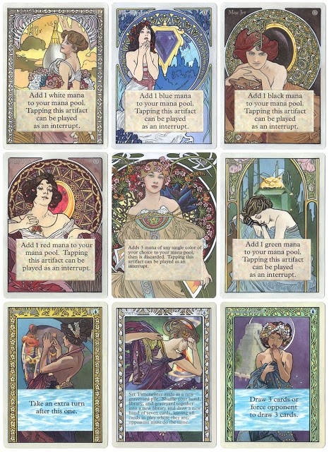 Why can't we have graffiti—and eventually a street artist—in our circle? Eric Klug and arguably Sandreline are “the” alterists as of now. Took a while, but we have the ice of the iceberg finally. I’d kill to see a mere Tumblr of MTG murals and tie them into alters. I think you see where I’m going with this. Maybe we can get Klug to make a mural of five colors of Magic, all Mucha-style. Hell, I’d be happy with a random person asking Klug for permission to take five of the images below, put it on a 3M overhead projector, project onto the wall, and just trace the colors. Is that rocket science, you guys?