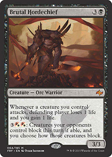 Brutal Hordechief is basically a Hellrider in disguise. Although it doesn’t have haste, it does add some free life-gain onto its ability, making it even easier to win races. It also has a second ability that allows you to win games in which you wouldn’t otherwise stand a chance. For 5 mana, you can force all your opponent’s creatures to block your smallest threat, letting the rest sail right past to end the game.