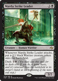 Pulse Tracker was a strong 1-drop for the Vampire deck in Zendikar-era Standard, and Mardu Shadowspear is even better, thanks to the addition of dash. Although the ability won’t come into play often, it can occasionally help you deal those last few points of damage when you draw a Shadowspear later in the game.