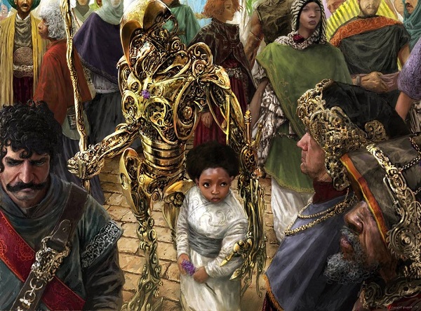 As Kaladesh images go, this snapshot clues us in to an immense amount of information about the culture of the plane. We see constructs as babysitters, ornamentation is constant, and the streets are busy. I want to see this zoomed out to see more, and in a few short months, we do get to see more.