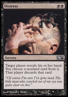 Distress was a previous category winner and a reprinted card. It’s mighty difficult to ignore a previous version and not integrate anything for fan service or, frankly, determine how far you should deviate. At size, it’s really hard to see the fingers pushing into the creature’s head. You miss the best part of the artwork! I thought immediately of Bernini when I saw the fingers pressed into flesh.