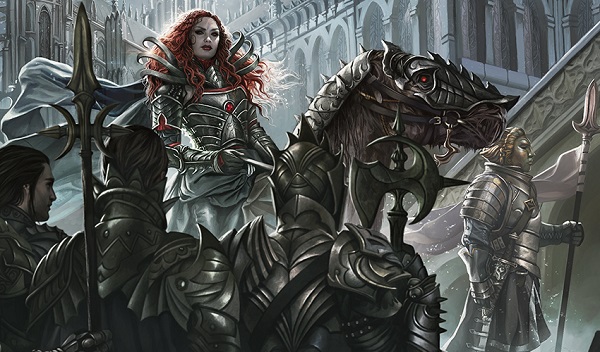 The details glow well enough for us to see the Avacynian symbols on the horse’s saddle and breast collar. Akin to a duchy or barony of Prussia or Germany, they would have leatherwork or metalwork showing devotional or allegiance on their mounts. It works well here.