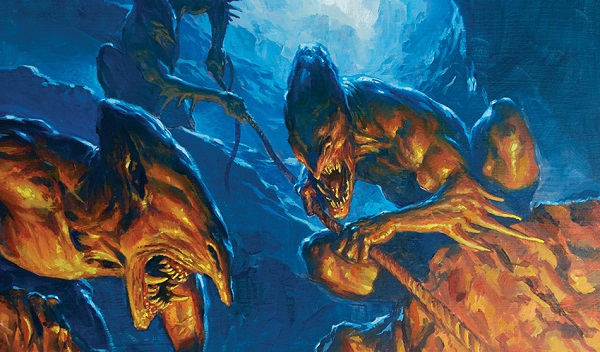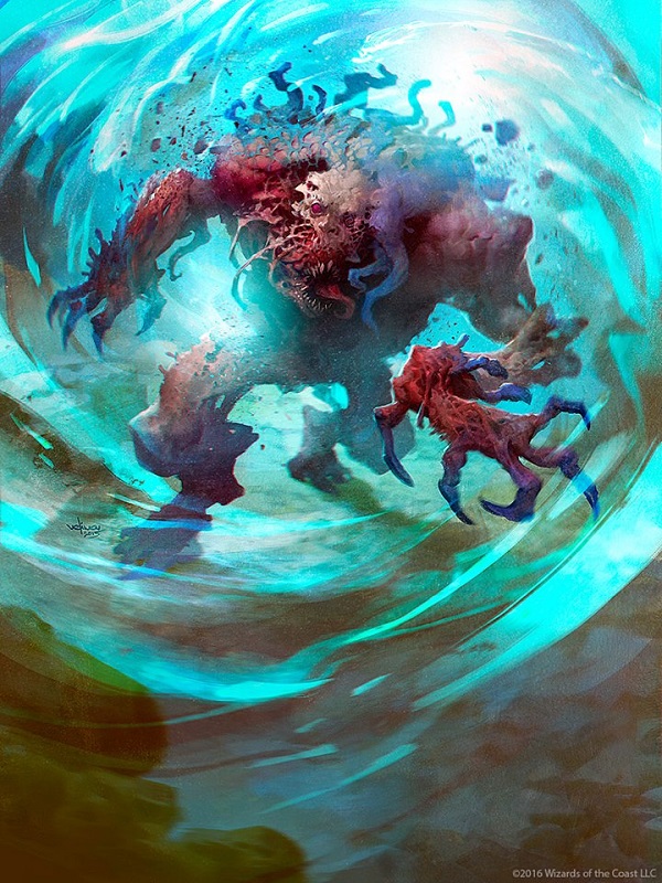 Were this any other plane and were I writing a year end review, this would be an utter gem. Instead, I see this artwork in context. The Eldrazi as otherworldly threat, alien like even, outstayed their welcome in my mind and became tired. Instead of an Eldritch, Lovecraftian horror, they were everywhere, omnipresent and became boring. Instead of Ryan being able to show an utterly surprising spell, destroying a threat multiple times larger than the spellcaster, it’s just another spell to stop one of the millions of Eldrazi. It’s less special. It’s minimized. The art has no impact on that perception either.