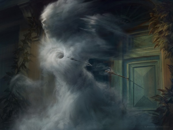I worked on the Dark Ascension set and there was an entire section on spirits in the style guide. The Planeswalker Guide to Innistrad explained on it briefly. Notable is that each color differed in the type of spirit, obviously, from ancestry to attack spells and so on. Concept altering with the Drogskol Cavalry here is that Bodin didn’t quite follow the color depiction of spirits. Look below to see the White spirits being gold/yellowish in color, with some exceptions. Normally the translucent blue or turquoise was associated with the Blue aligned geists or spirits, though no longer uniform.
