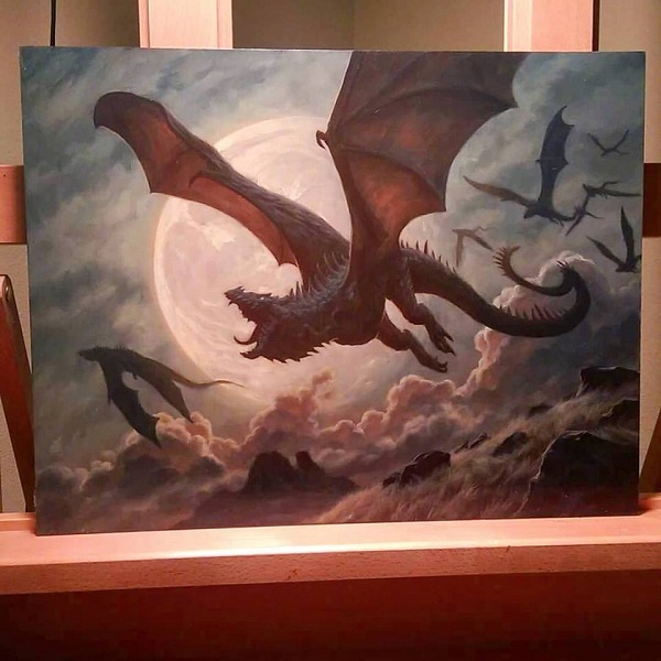 It’s a fun scene, showing us two figures in some type of flying copter being intercepted by a dragon where hope is utterly lost. Fire is imminent and all the figures can do is freeze in shock and terror, waiting for the inevitable. How hopeless, how serene in their final moments.